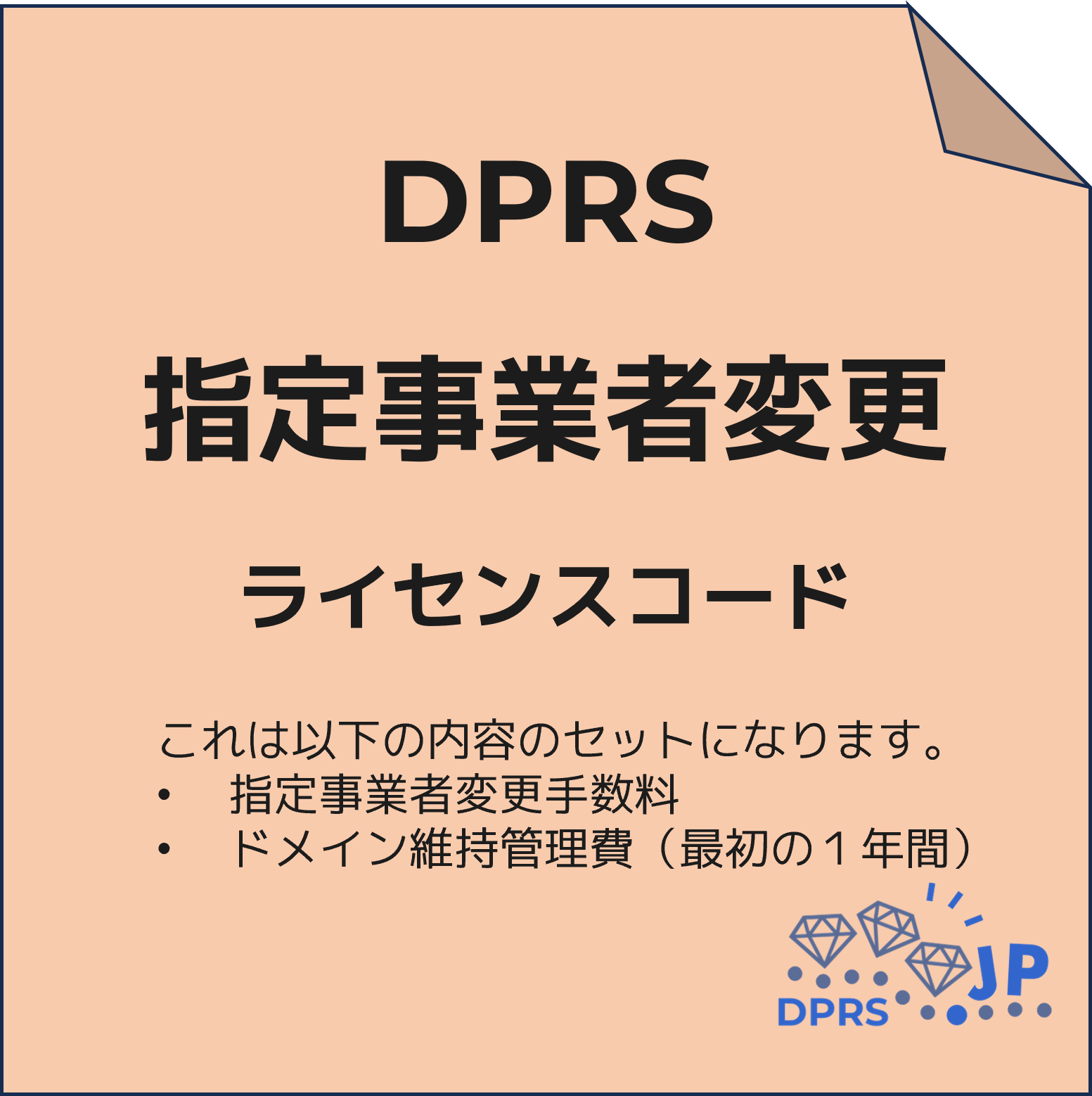 他社からDPRSへの指定事業者変更手数料とドメイン維持管理費(最初の1年間)のセットになります。